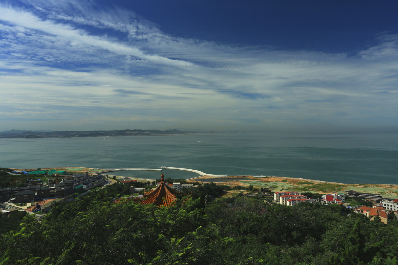 在明珠廣場(chǎng)可以看到海上漁場(chǎng)和對(duì)岸的蓬萊