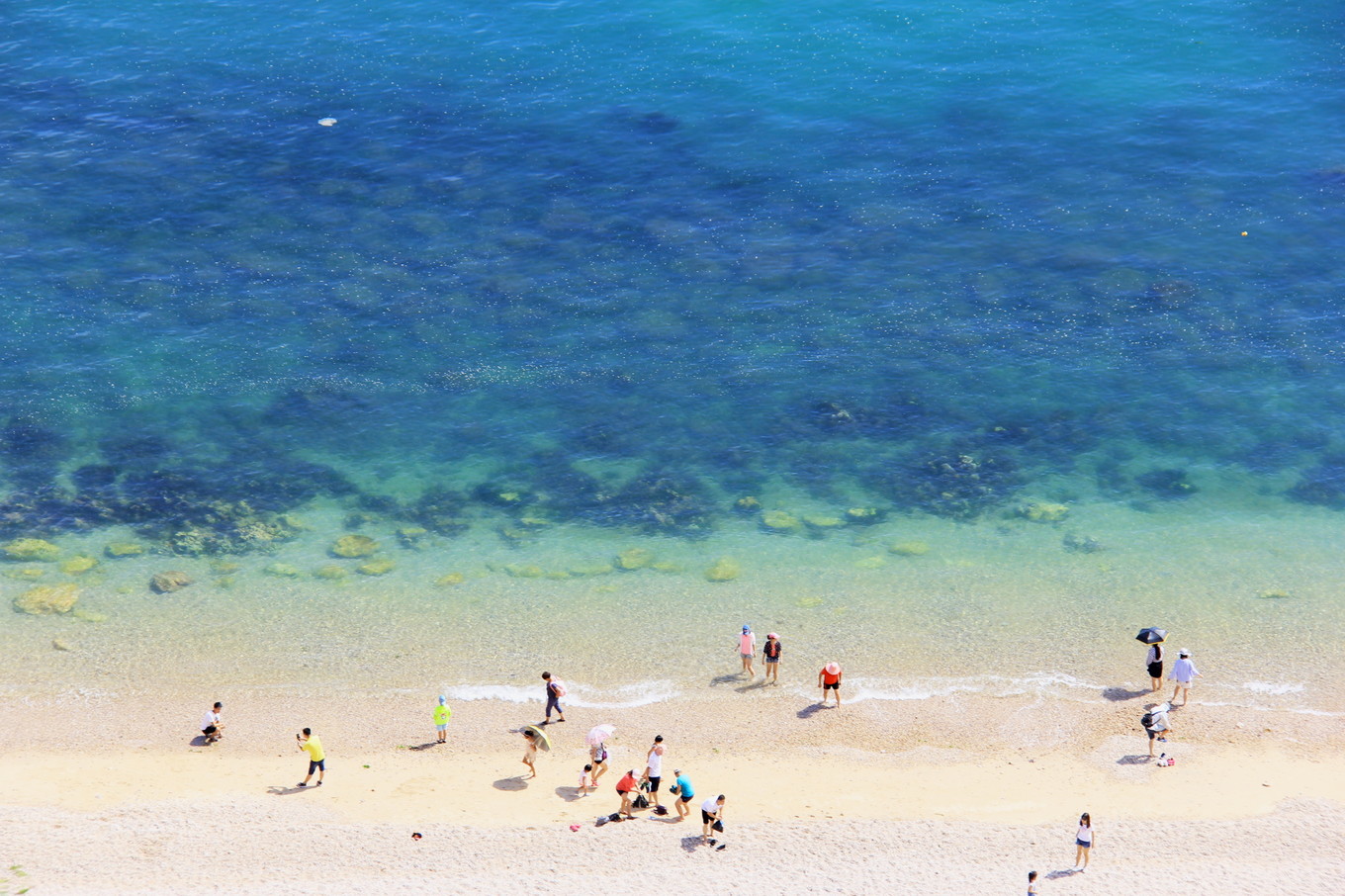 沿著千余米的海灘漫步返回,享受著免費(fèi)的足底按摩