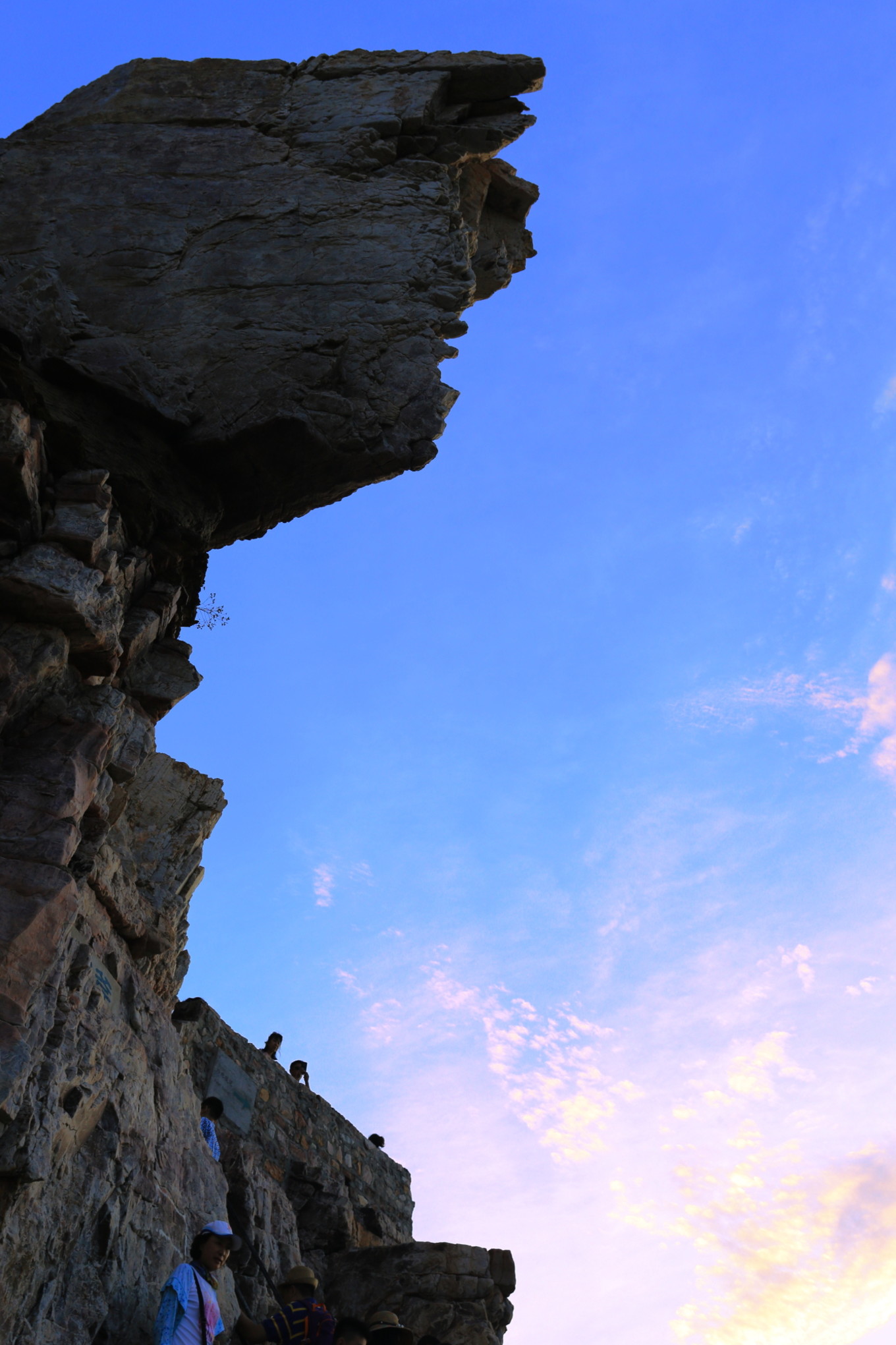 我們選擇了從東側(cè)的鷗翅灣方向下去,這樣可以看到山崖的剪影就像帶著皇冠的人頭