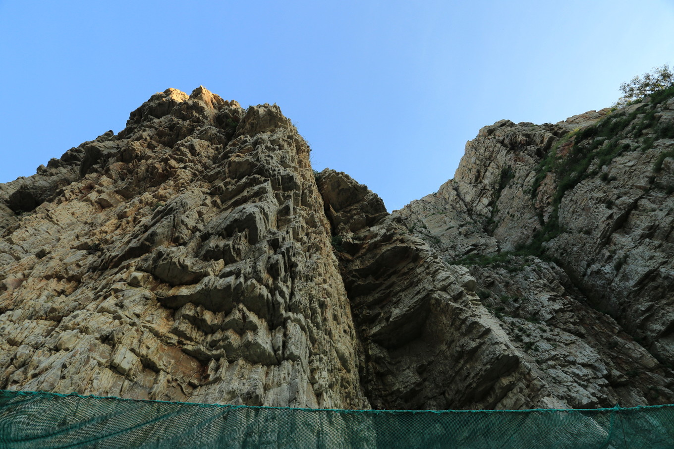 山崖下建有防護(hù)網(wǎng),防止崖頂落石