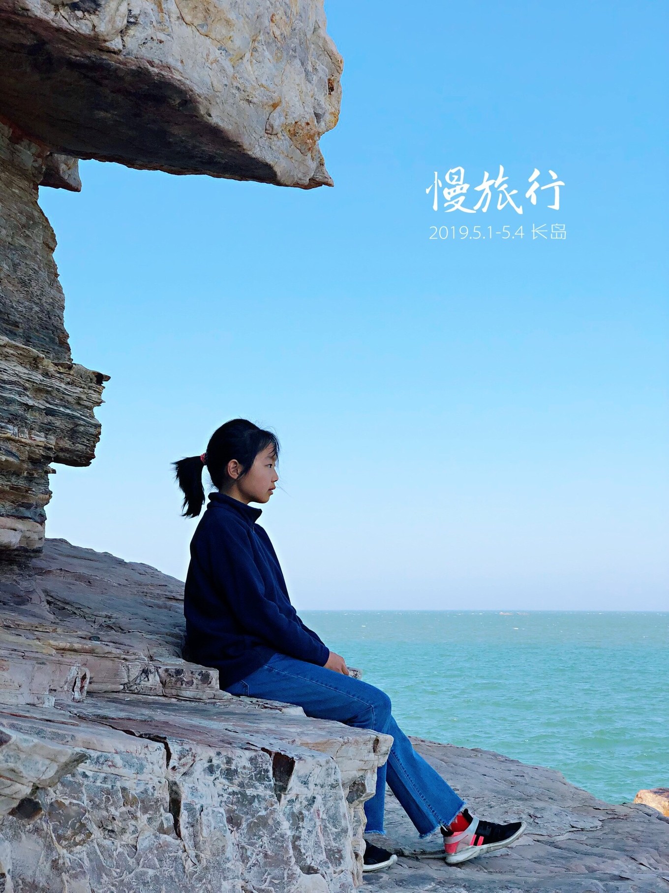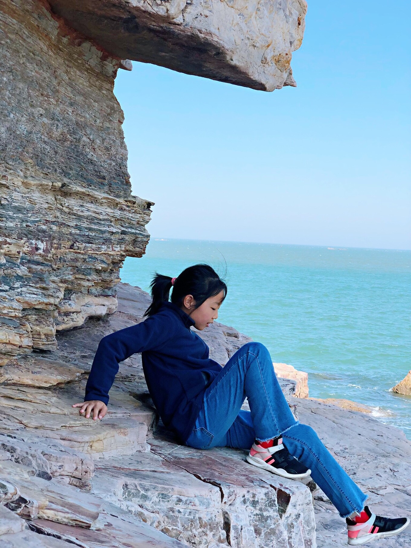 長山尾走到了岸的最遠(yuǎn)處?,F(xiàn)在小妞的左邊是渤海,右邊就是黃海了。太妙了,哈哈