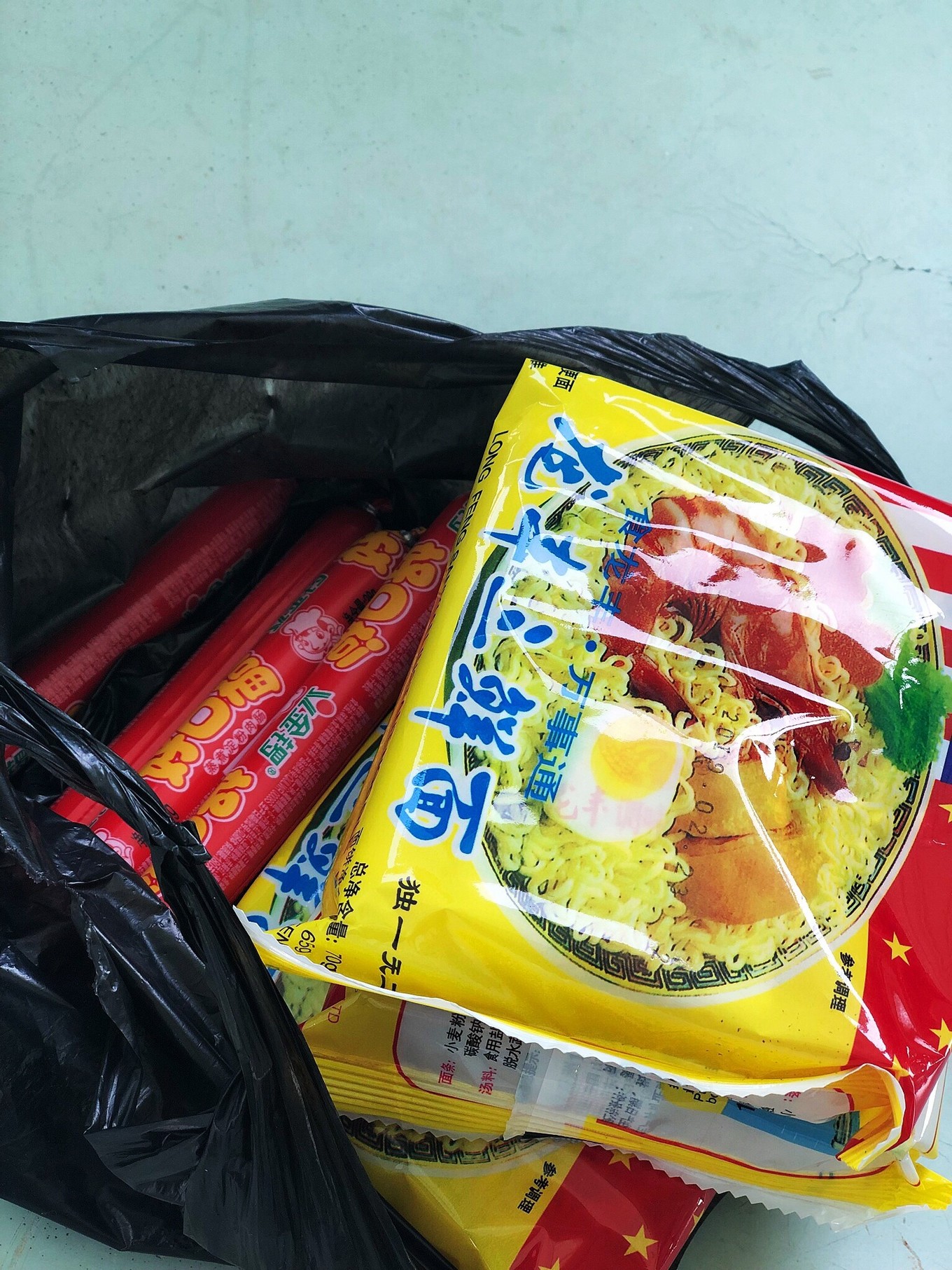 喂海鷗專用細(xì)火腿腸,和龍豐方便面。經(jīng)典喂鳥兩件套,長島人民都知道~