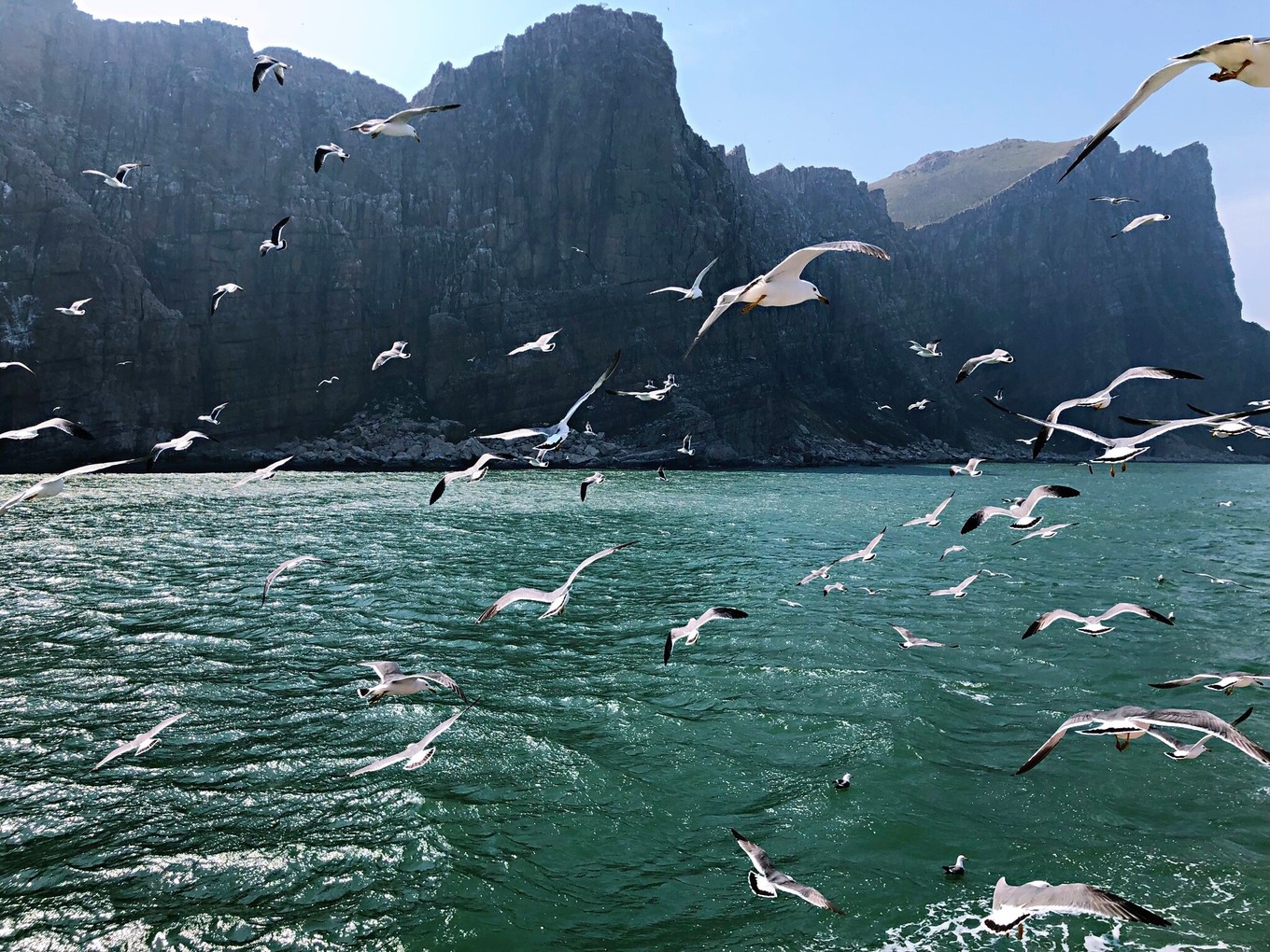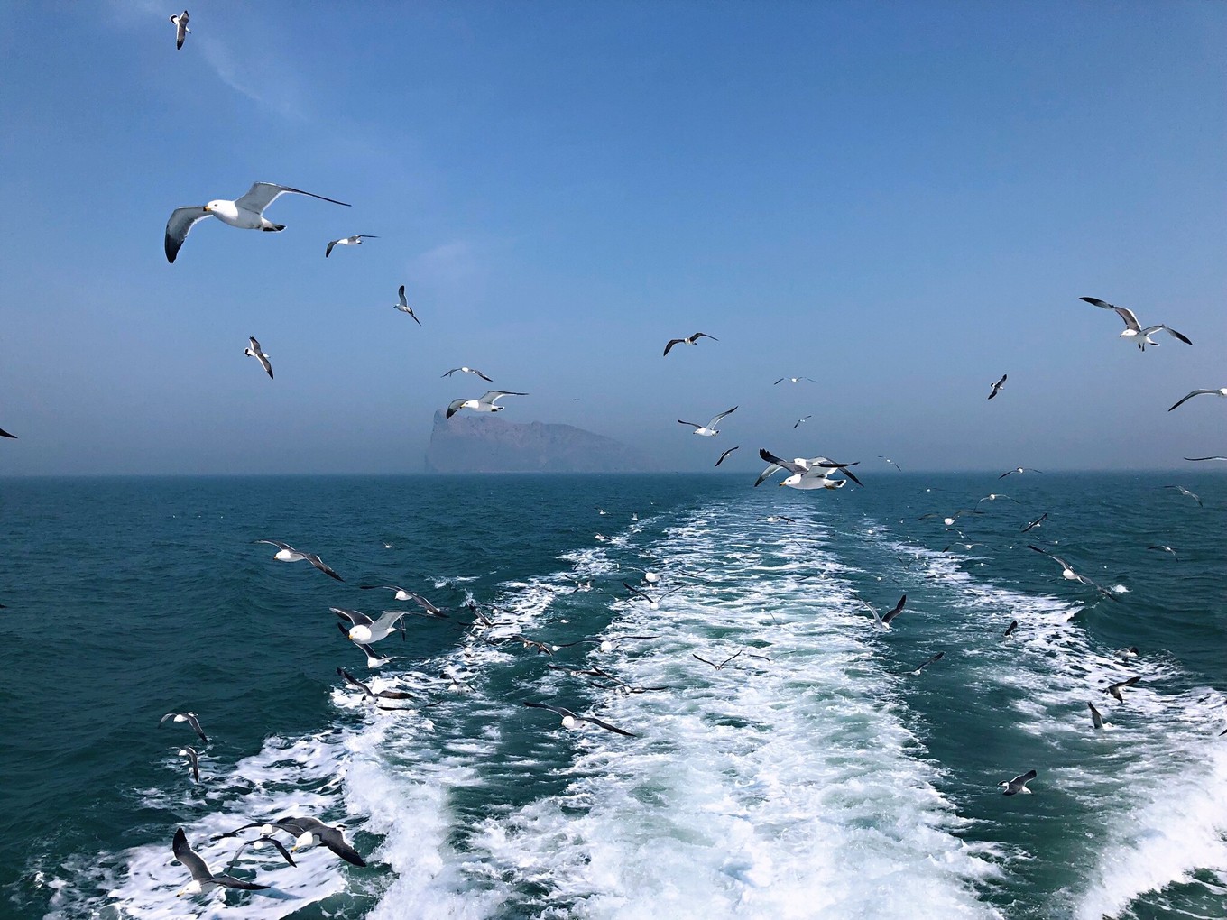 向海的更遠(yuǎn)處行駛,明顯海鷗更多了。也難怪了,我們就是要去到它們的家啊