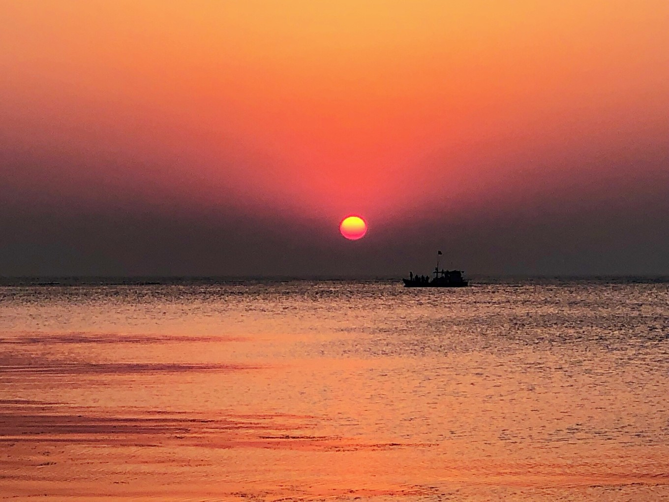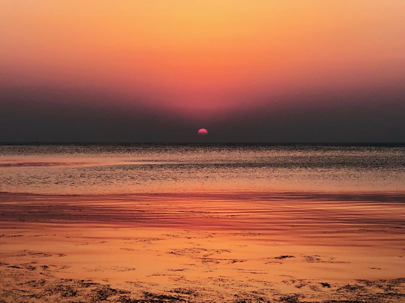 這個(gè)完全可以直視的太陽,給海邊鍍上了一層黑金色