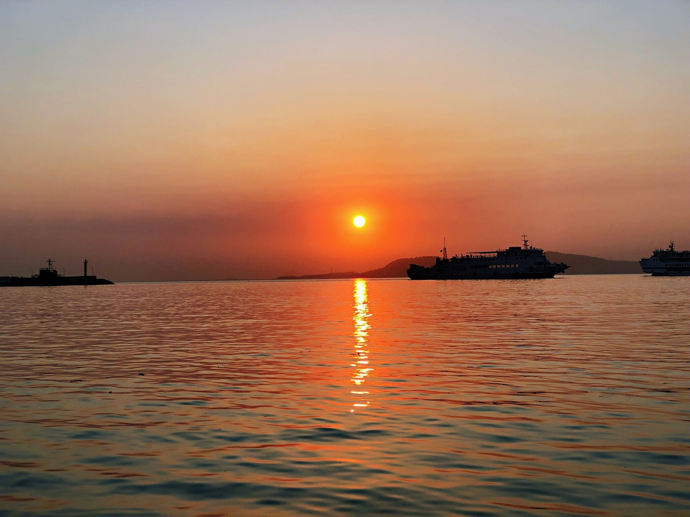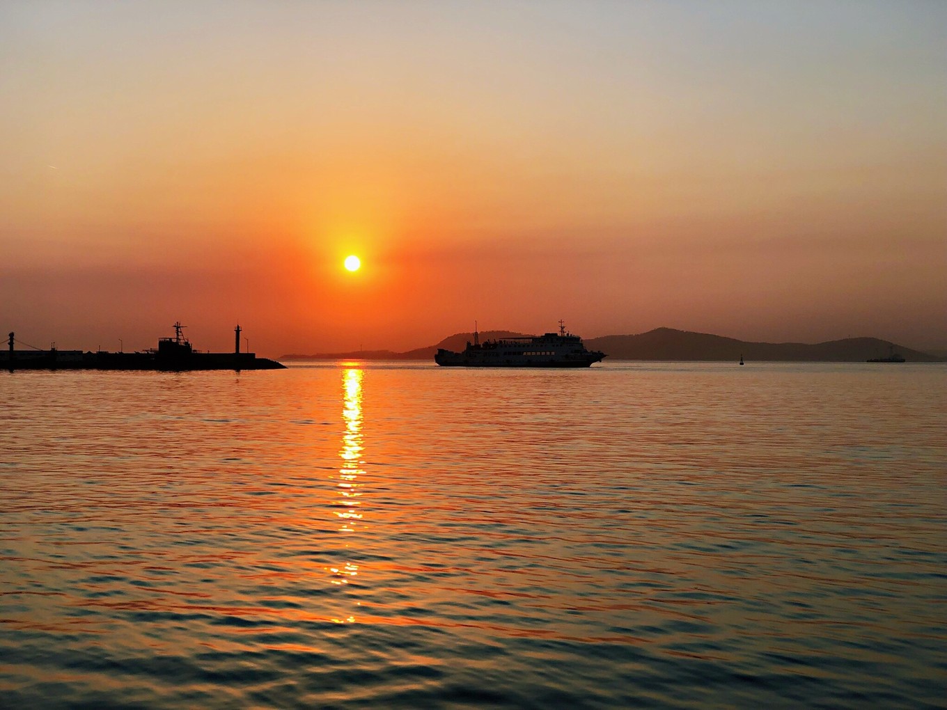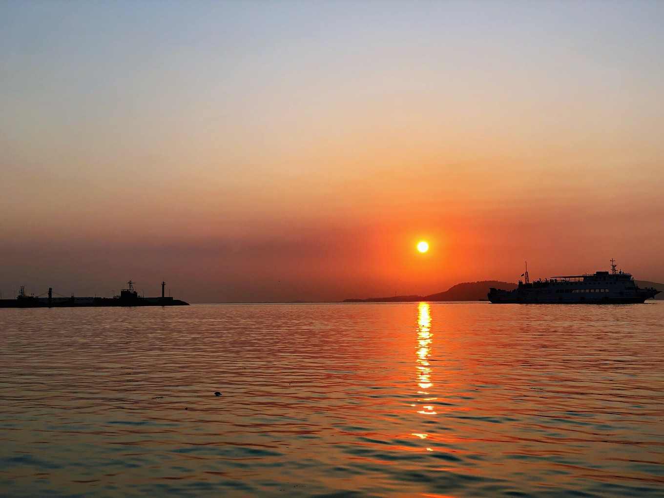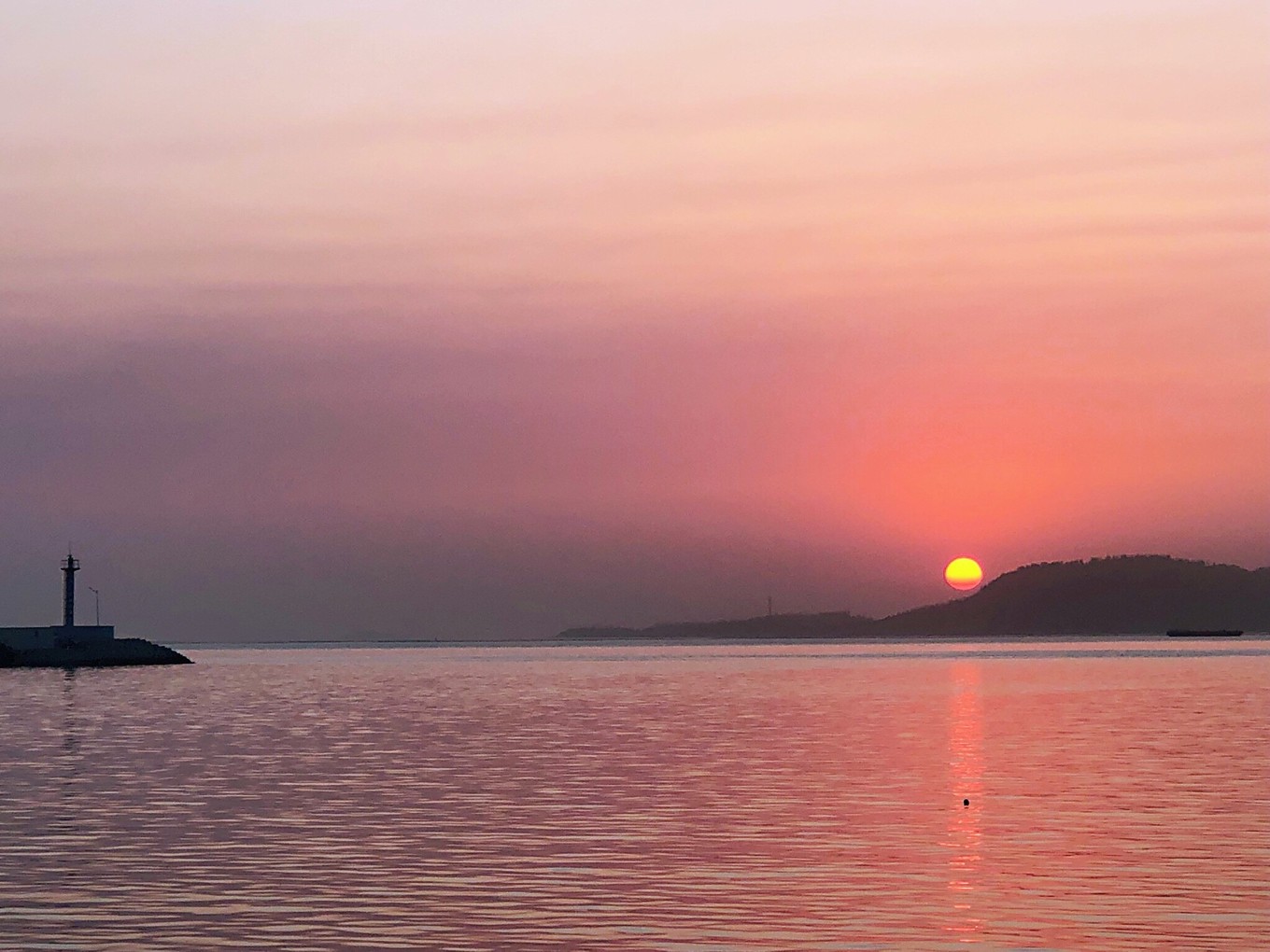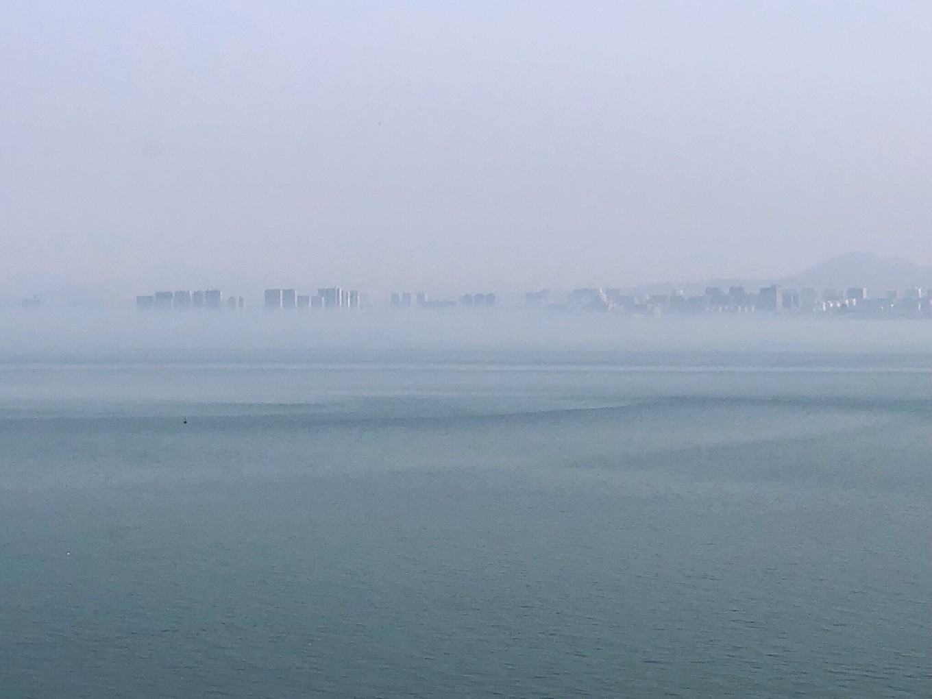 右手邊的黃海,照片看起來比渤海還要靜謐一些。