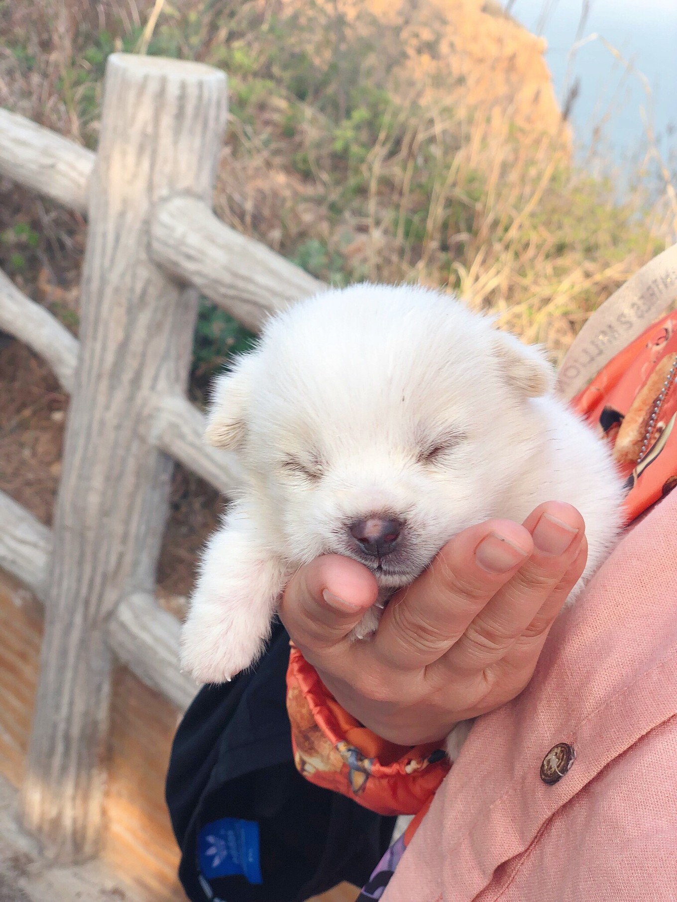 登山時(shí)偶遇一只狗寶寶。未滿月的薩摩耶,有人見過嗎