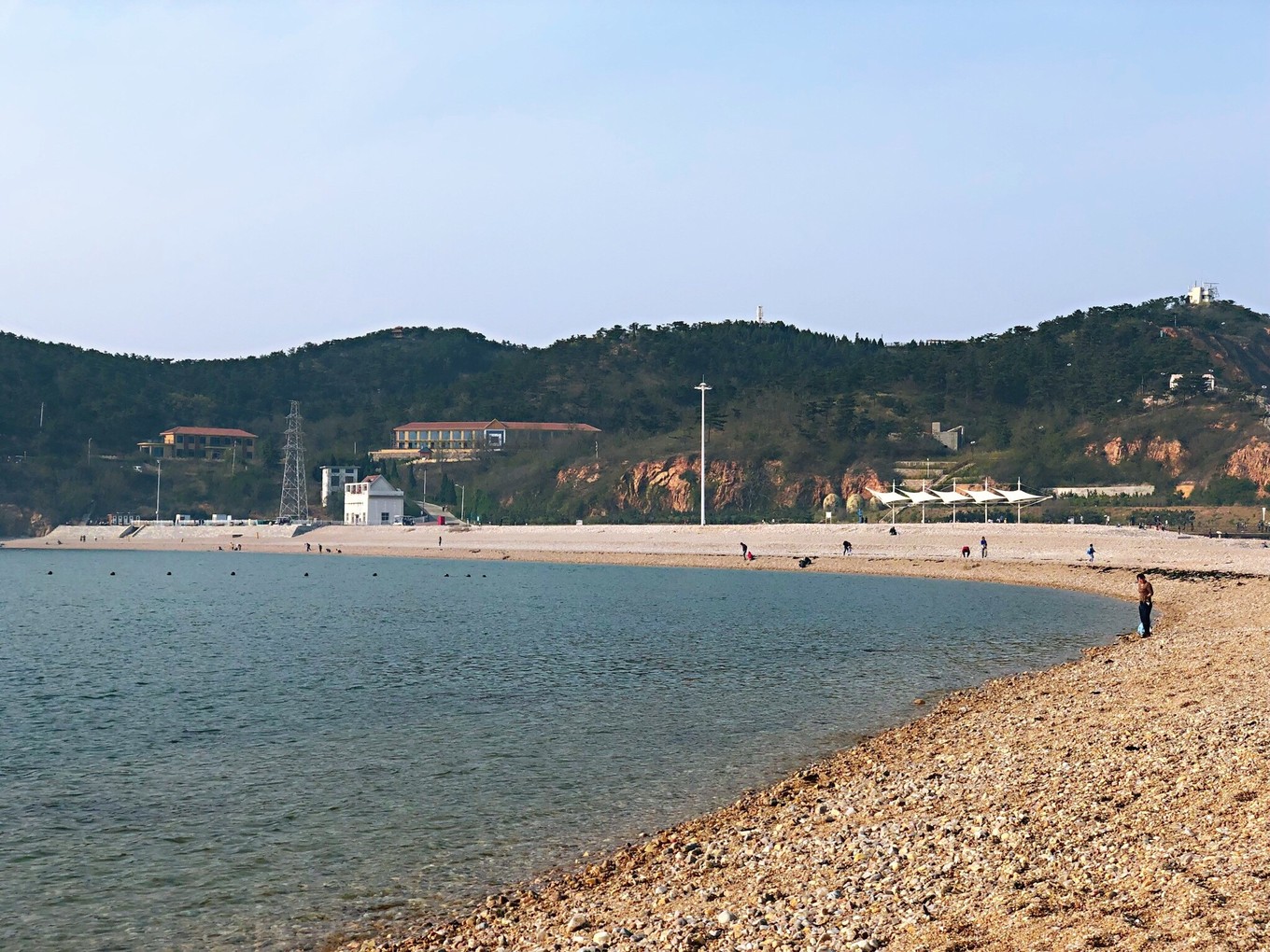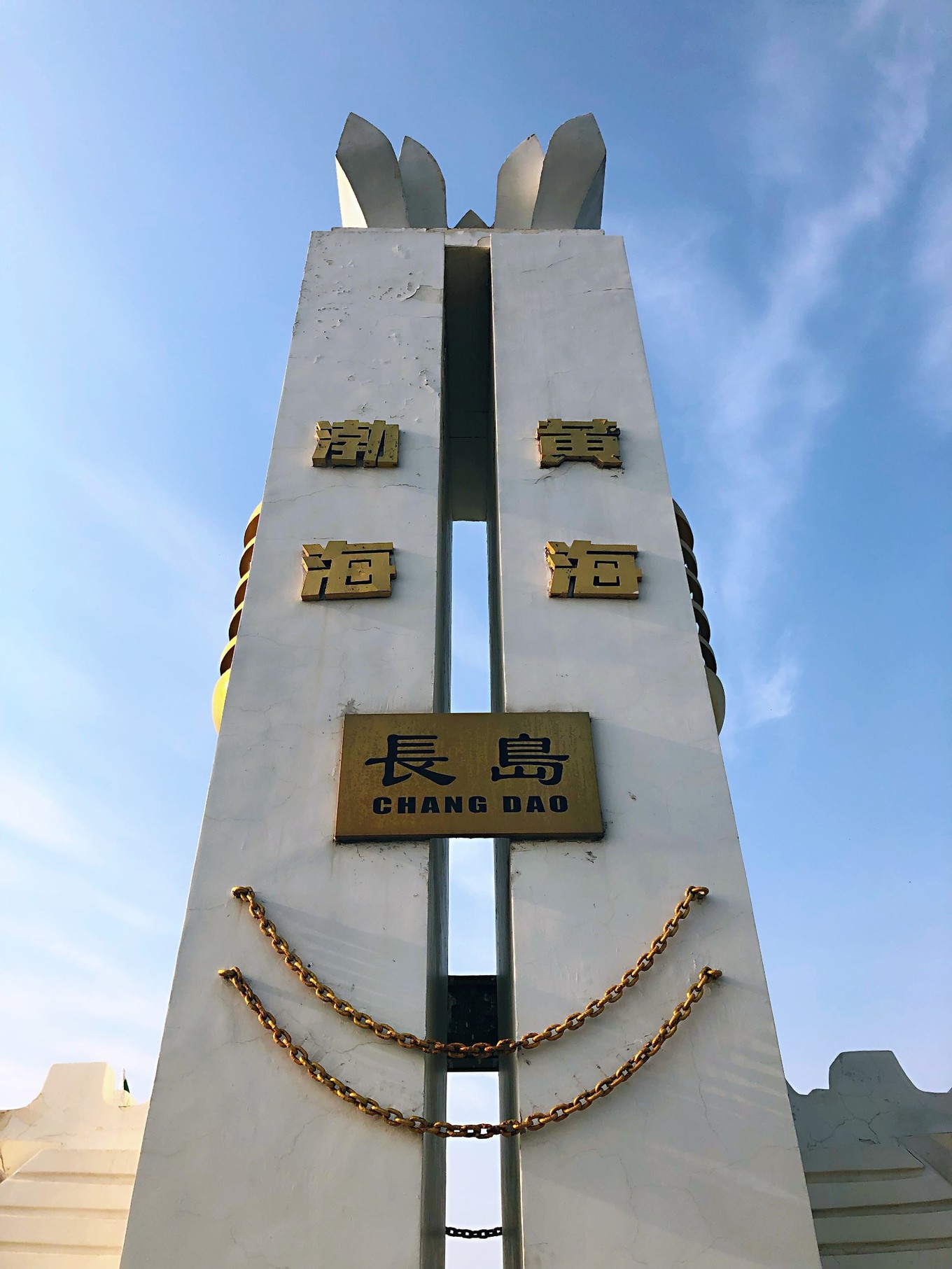 這里是觀賞海面分界線的最佳位置,可以看到很明顯的界線。據(jù)說在風(fēng)浪大的時(shí)候,黃海由于是外海所受的影響更大,裹挾更多的泥沙而使得海水呈黃色,而渤海這邊相對(duì)平靜,兩邊顏色形成鮮明反差,這樣的效果才最好。