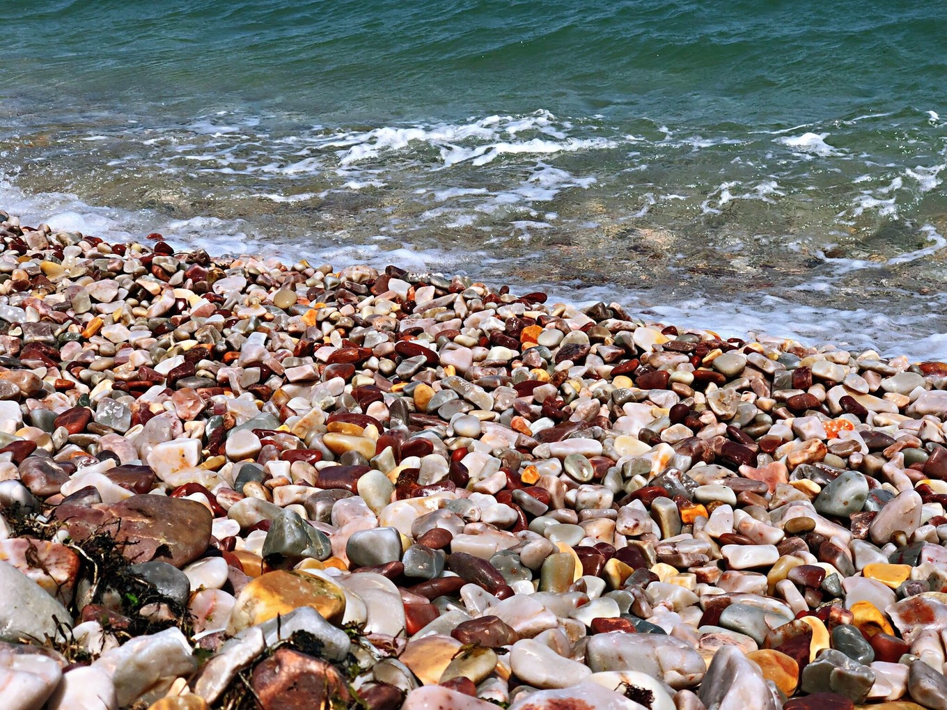 這是一個(gè)溫暖且無浪的下午,雖然我們沒有看到效果最好的交界線,但是能享受這樣的海面和石灘,也是很好的。
