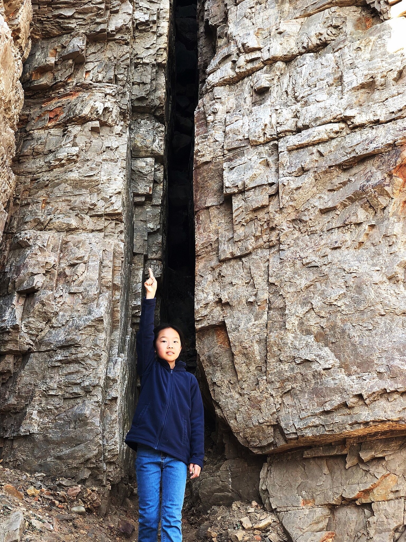 九丈崖的得名顯然來自于它的崖。薄薄的千頁巖堆疊而成的這種巖石形態(tài),竟然還藏了個(gè)“一線天”~