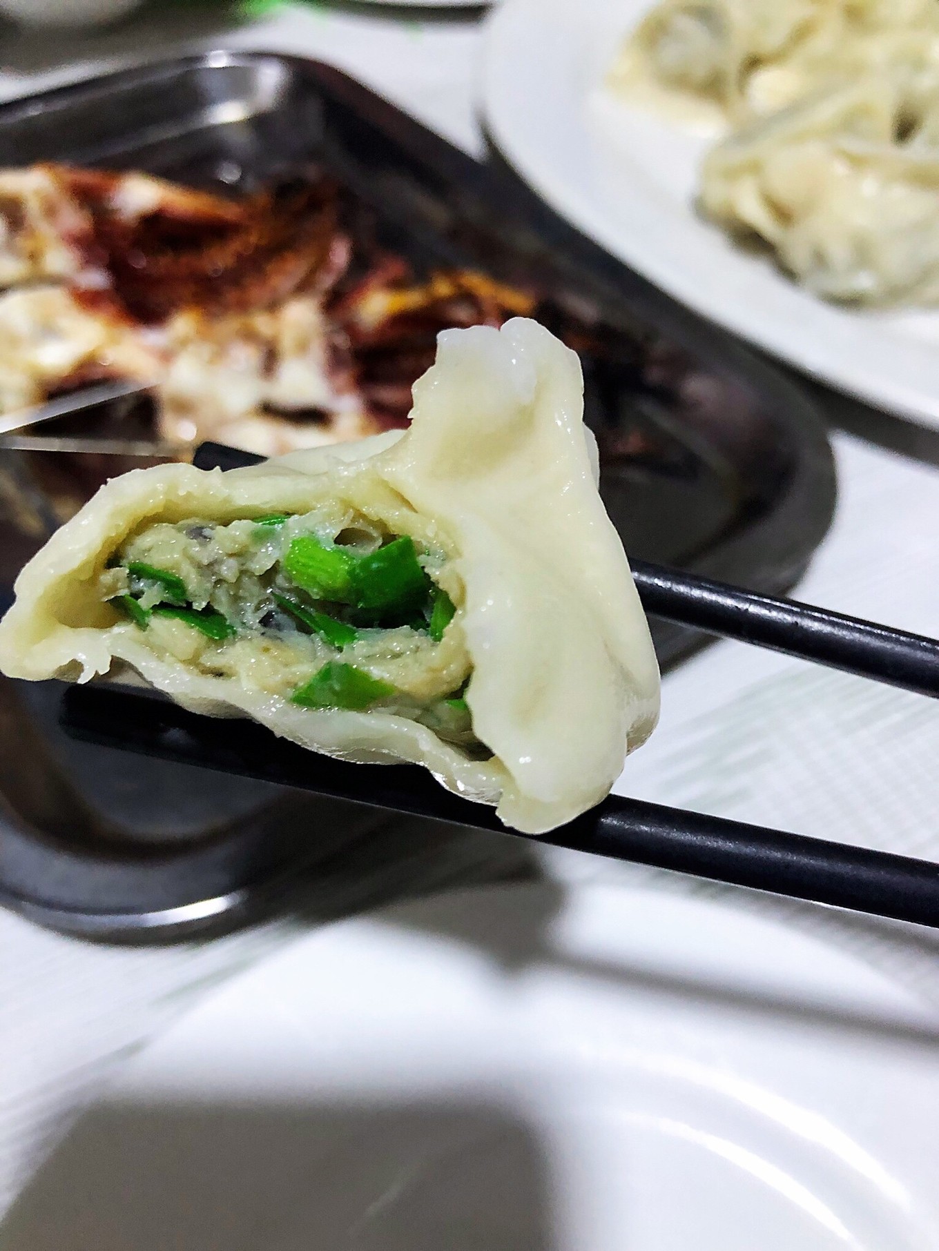 我們一共吃了兩頓鲅魚餃子,第一次在老姜燒烤,第二次在老漁民餃子館。比較起來,論個(gè)頭是老漁民的餃子更大,論魚肉的量也是老漁民的更足。但是我覺得還是老姜的味道更鮮美,餡料的比例也更合適些,不會(huì)那么飽人。