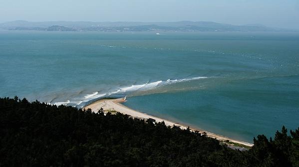 林海公園的盡南,即是著名的黃、渤海分界線--長山尾。長山尾由珠磯卵石堆積而成,由闊而尖,彎曲飄逸,形似“馬尾”。長山尾將一碧海分為兩個世界,涇渭分明,令人無不感嘆大自然的鬼斧神工。