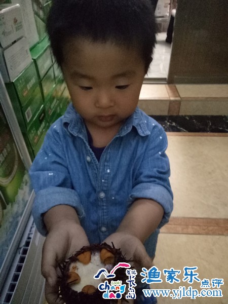 阿姨很會(huì)做飯,叔叔也熱情。關(guān)鍵是老板家有個(gè)小外孫特別討人喜歡,手捧著海膽送給我吃,把我稀罕的忍不住抓拍了張照片(圖一),寶寶叫小蘋果,很可愛。