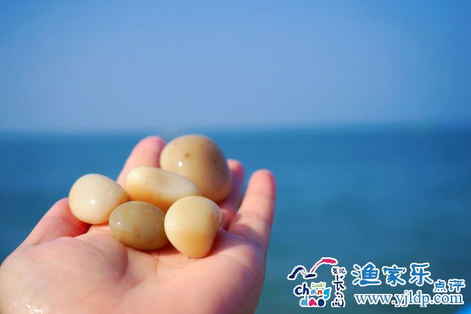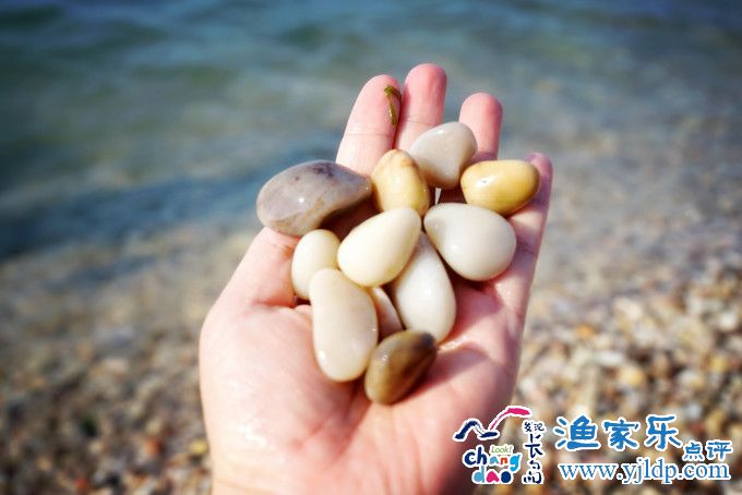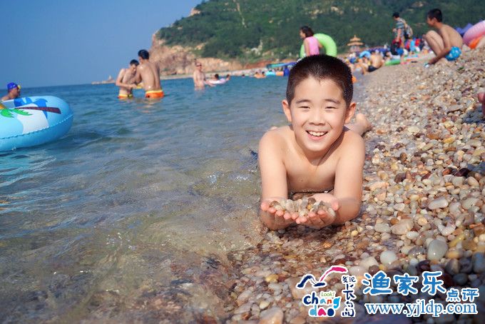 媽媽留在岸上給我們看東西,我們幾個就迫不及待的沖到了海里,海水確實很清澈,最有情致的是月牙灣的球石。海灘球石是因為地殼運動地表隆起后造成鄰近山巒的巖石掉落,石塊置身于弧形的海灘,通過波浪無休止的沖刷磨礪而逐步變圓型成為球石。因石英巖中攙雜了鐵、錳、鋅等雜質,因此呈現(xiàn)出各種色彩。世上的海灣舉目皆是,而具有“皎白如美玉,晶亮賽琥珀”的千米球石長灘,卻只此一家,感動于大自然的神奇,相信每一顆球石都有它自己的故事!山東長島