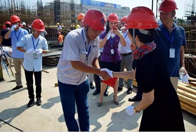 圖為工地現(xiàn)場,張秀琬董事長親切慰問了奮戰(zhàn)在一線的建設(shè)工人并送上慰問