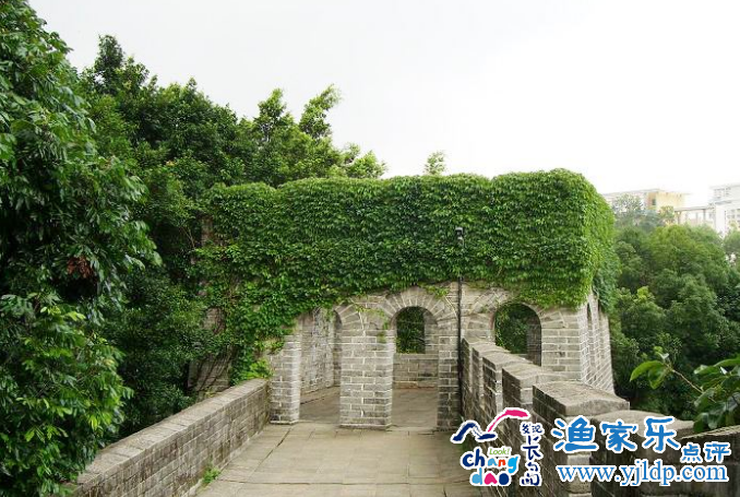 公園側(cè)門售票處斜對面仿古長城,建于1997年,仿北京長城按1:1比例修建,全長380米,有4個烽火臺。南嶺村是全國首家擁有此旅游項目的行政村。