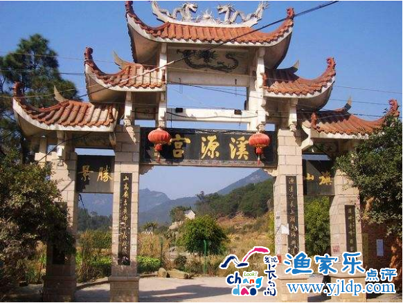 清代林楓《榕城考古略》載:“龍?zhí)渡皆谑欢?,一名西山。……旁有屋?shù)楹,祀張真人,俗稱溪源宮”。溪源宮背山臨溪,依山而筑,坐北朝南,橫向排列。長島旅游從東至西計有宮門、真人殿、三相公殿、彭李獅公殿等建筑物,占地面積達(dá)1200平方米。宮觀為牌坊式建筑,宮門為三級馬頭墻,土石結(jié)構(gòu),開三個拱門。正門上方是白石鐫刻“溪源宮”橫匾,直行楷書、字徑約40厘米。真人殿右側(cè)有一摩崖石刻,長2.6米,寬0.95米,中間橫行楷書陰刻“溪源古跡”字徑約50厘米。真人殿、三相公殿(即護(hù)國留侯)和彭、李獅公殿均為單進(jìn)仿古宮殿建筑,面闊三間,混凝土結(jié)構(gòu),布局嚴(yán)謹(jǐn),規(guī)模宏大。