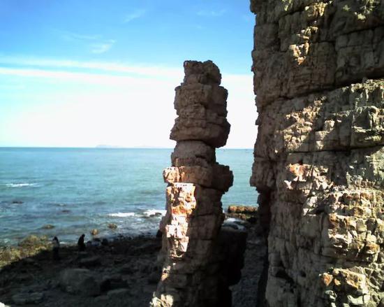 位于北長(zhǎng)山島西北角,九丈崖緊鄰月牙灣,是島上又一處精華。那里的懸崖以陡峭和險(xiǎn)峻而著稱,與月牙灣有著不一樣的精彩。九丈崖的九字是個(gè)約數(shù),但見(jiàn)高聳入云的懸崖從海邊拔地而起,當(dāng)你真正置身懸崖下邊的時(shí)候,仰望絕壁萬(wàn)丈,就會(huì)感慨大自然的神奇造化!大海中能有如此鬼斧神工的自然景觀,在國(guó)內(nèi)是沒(méi)有第二個(gè)地方的。