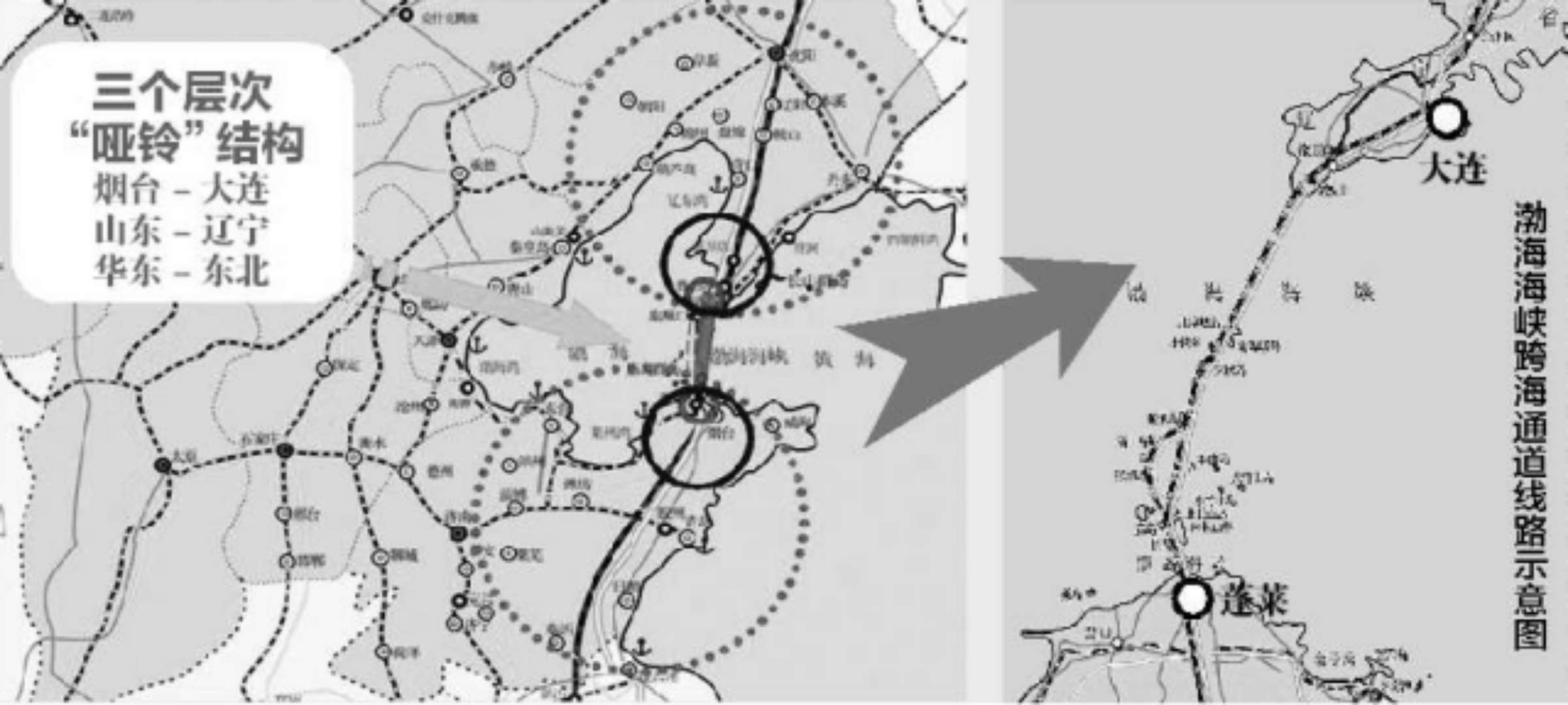 渤海海峽跨海通道研究,是面向21世紀(jì)中國東部沿海地區(qū)乃至全國經(jīng)濟(jì)社會發(fā)展而提出的一項重大而深遠(yuǎn)的研究課題。其基本設(shè)想是:利用渤海海峽的有利地理條件,從山東蓬萊經(jīng)長山列島至遼寧旅順,以跨海橋梁、海底隧道或橋梁隧道結(jié)合的方式,建設(shè)跨越渤海海峽的直達(dá)快捷通道,將有缺口的C形交通變成四通八達(dá)的Φ形交通,化天塹為通途,進(jìn)而形成縱貫我國南北從黑龍江到海南十一?。ㄊ小⒆灾螀^(qū))長達(dá)5700余千米的東部公路、鐵路交通大動脈。