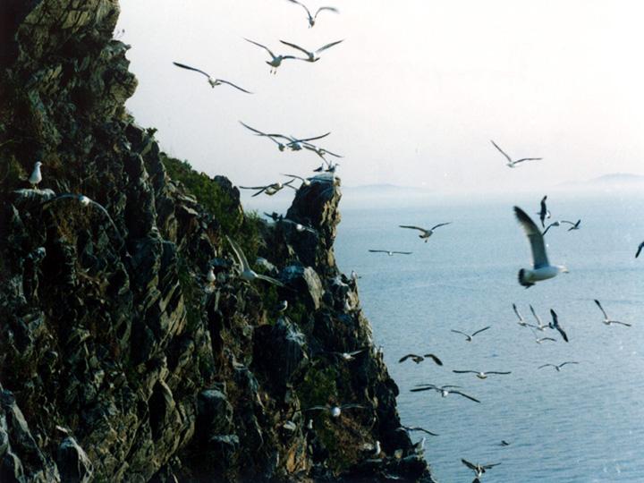 乘船臨島,仰望巖壁,鷗影綽約,鳥(niǎo)聲盈耳,幾萬(wàn)只海鷗與常住這里的白腰雨燕、海鸕鶿、扁嘴海雀構(gòu)成千羽萬(wàn)翼之下,成為鳥(niǎo)的天,鳥(niǎo)的海,鳥(niǎo)的島,景象頗為壯觀。