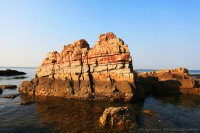 山東長島砣磯島西南岸的一段基巖海岸,大量的石頭被“烙”上了海浪一樣的紋理,這便是當?shù)匕傩账f的“彩石畫廊”了。地質學家解釋說,島上地層屬上元古界蓬萊群,變質程度較深,