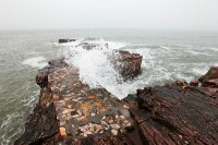 長島是我國唯一的海島國家地質(zhì)公園,其中以九丈崖景區(qū)的海蝕地貌和月牙灣景區(qū)、黃渤海交匯處的海積地貌最具代表性。九丈崖的巖石是在一億年前的喜馬拉雅山造山運動中由海底抬升起來的