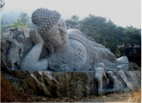 長樂臥佛是耐風(fēng)化青石整體巖雕刻而成,是全國獨(dú)有。長島民宿長樂臥佛雕刻工藝一流,耗時(shí)3年建成。長樂臥佛的姿勢為“吉祥臥”,佛的身后環(huán)立著12尊表情豐富佛祖的12大弟子石佛像,佛