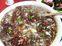 牛毛菜配海蠣子、蔥白、大蒜、香菜做成湯羹,不澀、不粘、不滑,解膩、開(kāi)胃,味道獨(dú)特,可謂“湯羹之冠”。喝起來(lái)總有肚飽眼不飽之感。