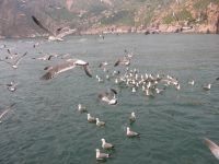 記者在長島港看到,客船不停在蓬萊和長島兩地穿梭,旅游大巴和的士將進島游客送往景區(qū)和漁家,一片繁忙景象。觀鷗賞崖,戲水納涼……在長島的各個景點,游客源源不斷的涌入。