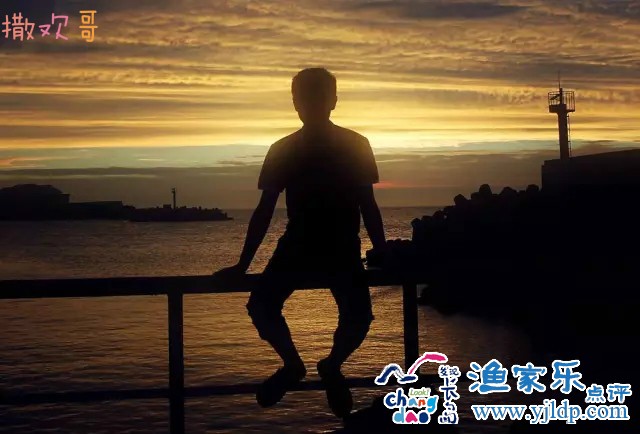 坐在港口的防波堤上靜靜地看著太陽沉入海底