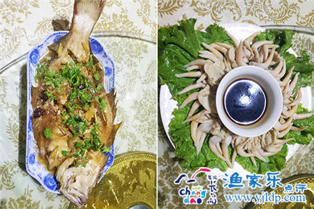 老板人很好,提前告訴我們通船情況,到碼頭接我們。我好好打量了一下這個(gè)小小的漁家客棧,雖然小小的,但是處處都很干凈,連廚房都十分整潔,連小有潔癖的我都感覺(jué)很滿意。麻雀雖小,五臟俱全,需要的都有??傮w感覺(jué),干凈,整齊,溫馨,小有情趣。早飯很簡(jiǎn)單,粥,油條,饅頭,小菜,足矣。出門前預(yù)定了中午的海鮮大餐,以前不吃海鮮的我爽爽的吃了一頓,絕對(duì)五星級(jí)酒店的水準(zhǔn),食材新鮮,清淡味美,最有特色的是一種大貝肉做的“生魚片”,平時(shí)不吃海鮮,所以不太懂啊。螃蟹,餃子和炸小魚都很好吃,沒(méi)吃完打包帶走。愉快的一次旅行,謝謝老板,祝生意興??!再來(lái)還住你家。