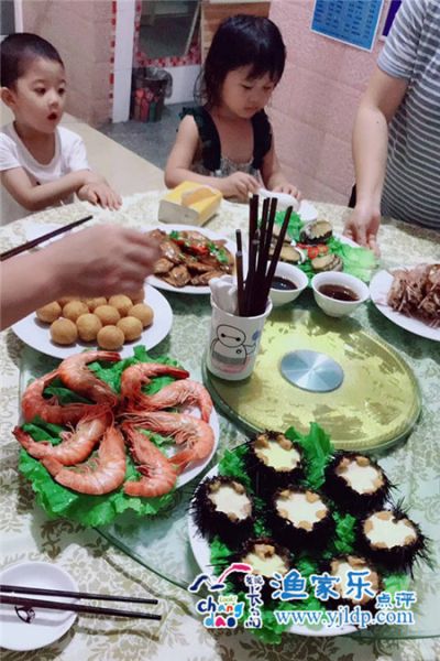 大人們安排好房間正是午餐時(shí)間,又被漁家大姐的廚藝爆表,滿桌子的美味海鮮大餐讓我們一路的疲憊頓時(shí)忘記,品種好多,有的都叫不上名!老板一家人特別隨和.熱情,用車或買票之類的事我們總是麻煩老板幫忙,白天車接送我們?nèi)ゾ包c(diǎn)玩兒,到用餐時(shí)間送我們回來(lái),每天三餐漁家大姐都給變著花樣做,基本都不一樣,每個(gè)人都吃得特別開(kāi)心!