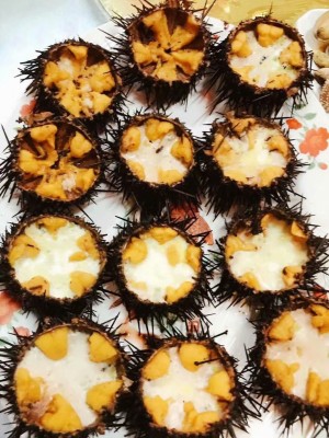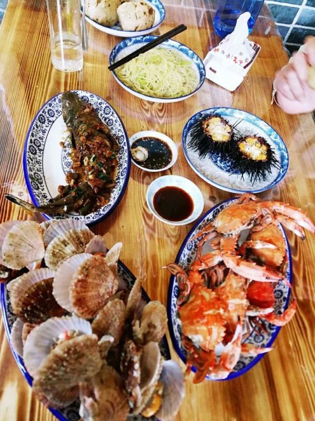 小龐一家非常的熱情,他們是家庭式的農(nóng)家院,小龐負(fù)責(zé)接待。因?yàn)槭峭厩暗牡荆瞬皇呛芏?,他特地給我們安排一個(gè)三人間和有2張大床的大房,都有空調(diào)、電視和獨(dú)立的衛(wèi)生間,我還第一次睡在那么高的大炕上。龐媽媽是手藝超贊的大廚,每天換著樣的給我們做各種各樣的美食,盡管島上的蔬菜一般都是島外運(yùn)過來的,還是在安排海鮮的同時(shí)盡量安排一、兩道青菜。每頓還細(xì)心地為我們熬制放了的八寶粥,超贊。臨走那天中午,特地為我們包了島上特色:鲅魚水餃,做了海菜湯。龐爸爸不愛說話,打回來的魚蝦絕對(duì)新鮮,第一時(shí)間送到我們的餐桌。