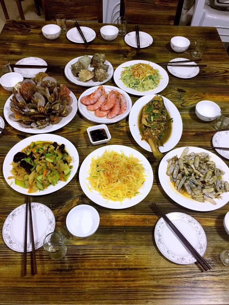 懷著一顆激動(dòng)的心情,一直都非常向往海島漁家生活,借著休假的機(jī)會(huì),我們一行8人便自駕來到膠東,想找個(gè)地方過幾天休閑而安逸的海島漁家生活。朋友都想住海景房,在網(wǎng)上眾多的漁家民宿中機(jī)緣巧合點(diǎn)中了海邊村漁家,感覺環(huán)境還不錯(cuò),網(wǎng)上點(diǎn)評(píng)也好,電話溝通中便感覺到小伙子真誠。大廚更是做得一手好飯菜,味道好,量足,非常有特色,特別是各種海鮮,真是特別的新鮮。還有鲅魚水餃,是我們從未聞聽過的美味。幾天下來,吃的都胖了幾斤,