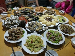 再說飯菜。我們哥幾個人,住了三天,吃了9餐,早餐雞蛋、咸魚、玉米粥,中午晚上都是9、10個菜,各種生猛海鮮不重樣,給力給力。