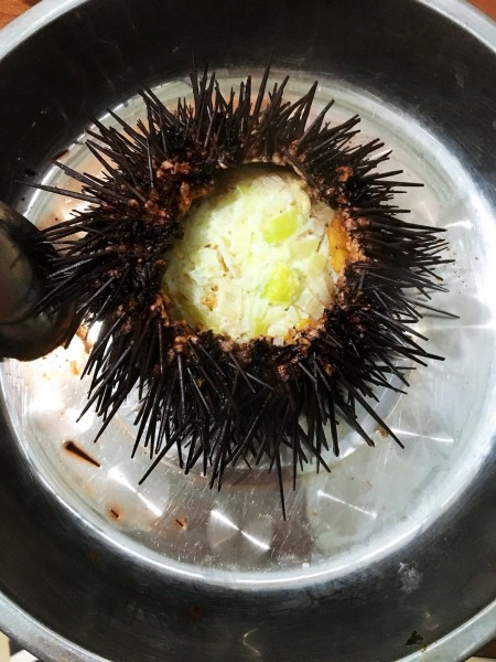 給我們最新鮮的海鮮 扇貝都是用盆上的 螃蟹我們也是吃的心滿意足 還有大海膽 大海螺 真是美味極了