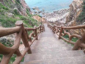 四號出發(fā)和同事一行五人住在聚海漁家,漁家去碼頭接的我們。一進(jìn)小院小梁就很熱情迎上來,帶我們看房間,每年都出去玩住的是客棧,真就趕不上小梁家的漁家樂。安排好房間,我們還不餓,就去趟九丈崖,離聚海漁家不遠(yuǎn),步行幾分鐘就到了。在海邊玩了一會,買點紀(jì)念品。就回去了,到院子一看一桌豐盛的飯菜,還真有點餓了。