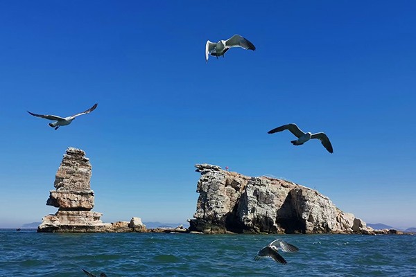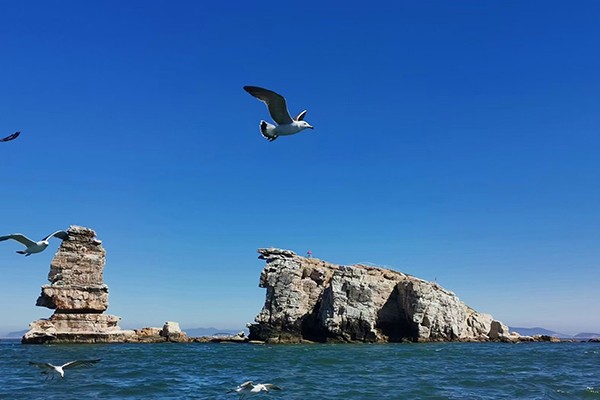 說實話菜量有點大了,但真心好吃,每個人都吃撐著了,休息一下去了月牙灣和九丈崖,說實話,長島的植被一般,海邊的海景不錯。