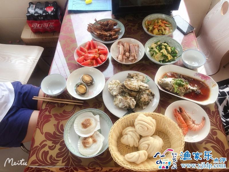 坐船到了島上直奔漁家路很好找,小劉老板給出的提示很清晰,到了之后看了一下,房間真是跟網(wǎng)上圖片一樣,超干凈整潔,看來網(wǎng)上說的沒錯。東西放好后就吃午飯了,一看嚇了一跳,4個人吃飯滿滿一桌,鮑魚,大蝦,各種海產(chǎn)品,真的嚇著了。