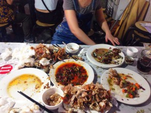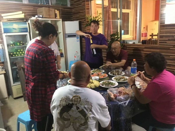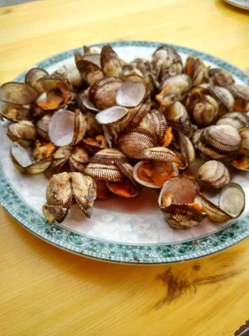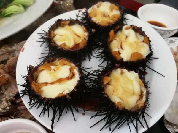 大哥每天提供新鮮的海鮮食材:扇貝、海虹、蠔、海螺、黃魚、黑魚、比目魚、海膽、……我也記不全了,大姐變著花樣的做成美味,每頓正餐我們好像都沒吃光過,